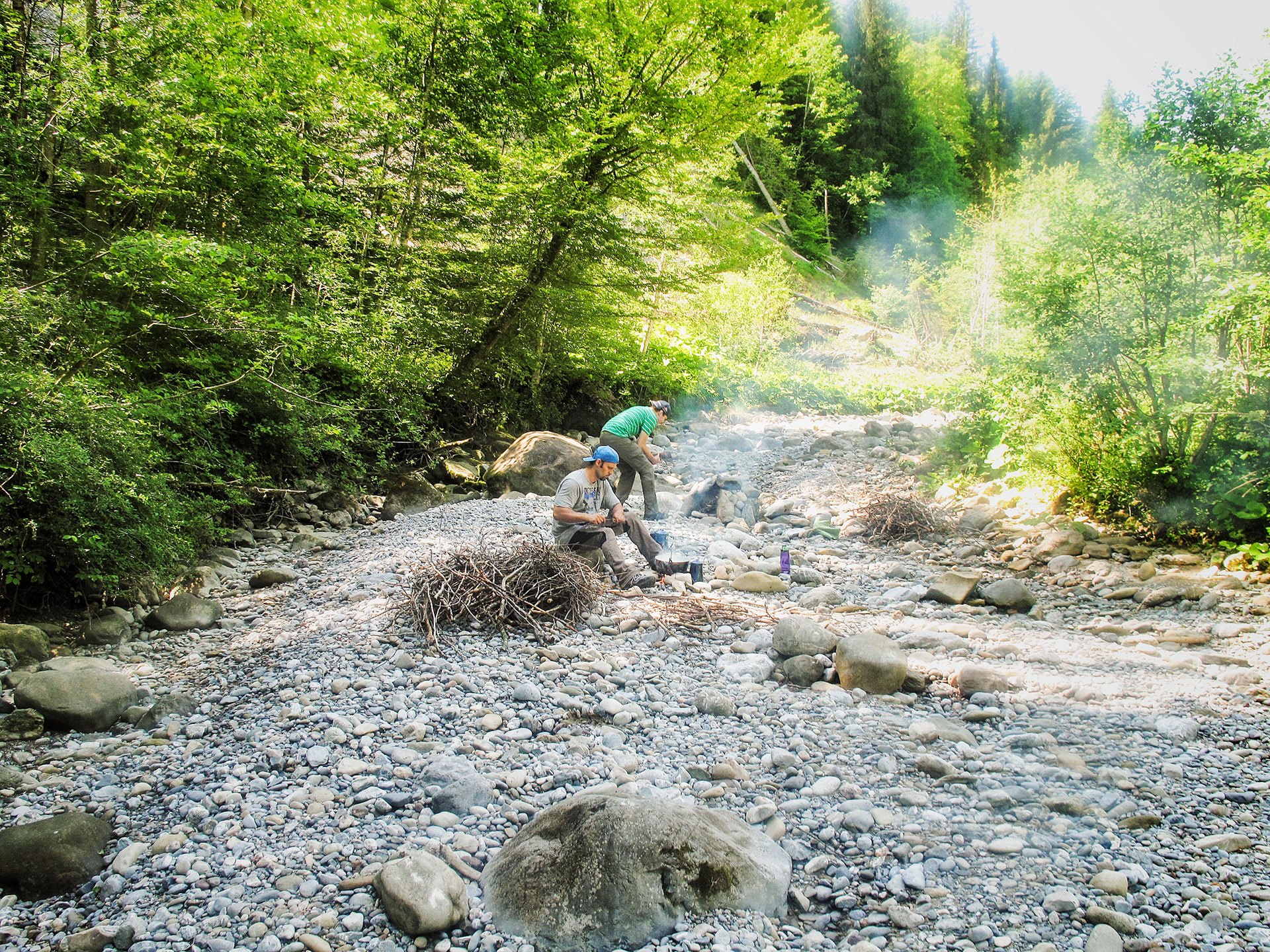 Wasser, Feuer, Luft und Erde diese vier Elemente begleiteten uns über das ganze Wochenende. Der Weg führte uns über Wiesen, Strassen und am Bach entlang um am Waldrand bei einem Fluss unser Camp zu errichten. Wir werden unter freiem Himmel oder unter Gruppencamps übernachten.